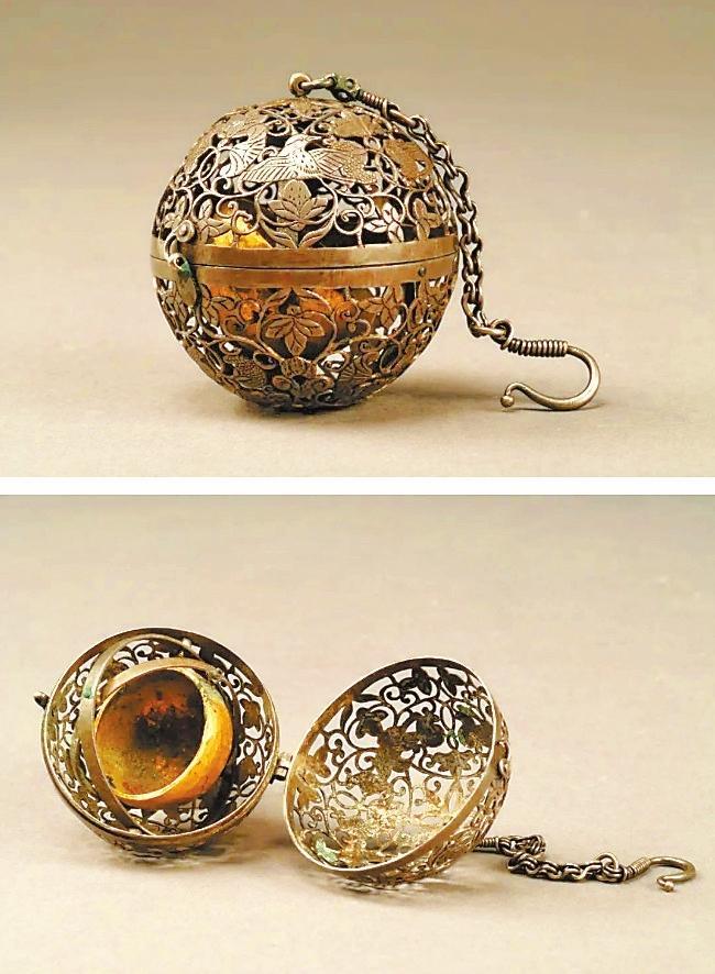 香囊(nang)最出(chu)彩的(de)(de)(de)地(di)方是機環(huan)常平架技(ji)術,是一種利用(yong)球(qiu)體內兩個同心機環(huan)與(yu)(yu)中央焚香盂之(zhi)間的(de)(de)(de)重力作(zuo)用(yong),使(shi)其在自由轉動(dong)的(de)(de)(de)時候,始終能(neng)保持平衡的(de)(de)(de)機械原(yuan)理。唐代的(de)(de)(de)香囊(nang)豐富多樣,這種金屬造型的(de)(de)(de)香囊(nang)設計更為機巧精致,深受妃后、貴婦們所推崇喜(xi)愛(ai),它上承漢(han)代的(de)(de)(de)常平架技(ji)術,下延現(xian)代陀螺儀萬向支(zhi)架技(ji)術,是中國古代科(ke)學(xue)技(ji)術與(yu)(yu)手工藝技(ji)術對(dui)世界的(de)(de)(de)杰出(chu)貢(gong)獻。