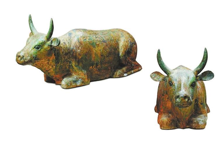 鎏(liu)金銅牛(niu)(niu)是寧夏博物(wu)館的(de)鎮館之(zhi)寶(bao),出土于(yu)西(xi)夏陵101號陪葬(zang)墓。銅牛(niu)(niu)長120厘米(mi)(mi),寬38厘米(mi)(mi),高44厘米(mi)(mi),重188公斤。整(zheng)座銅牛(niu)(niu)造型獨特,取跪臥姿勢,雙(shuang)(shuang)角彎曲(qu),雙(shuang)(shuang)耳橢圓直立(li),鼻子微微向(xiang)上翹,眼(yan)睛(jing)圓睜注(zhu)視著遠方。它頸(jing)部(bu)的(de)肌肉線條非(fei)常清(qing)晰、流暢。銅牛(niu)(niu)雙(shuang)(shuang)眼(yan)炯炯有光,卻又呈現溫馴(xun)之(zhi)態,神(shen)(shen)情(qing)極(ji)似魯迅(xun)先生筆(bi)下的(de)“孺子牛(niu)(niu)”。該國寶(bao)級文物(wu)集塑形、鑄造、鎏(liu)金、拋光等許多工藝于(yu)一(yi)身(shen),真正達到(dao)了以形傳神(shen)(shen)、神(shen)(shen)形兼備的(de)藝術境(jing)界。