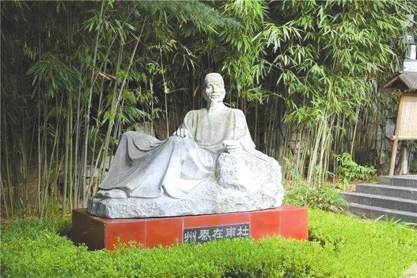 南郭寺內,翠竹叢(cong)生。如今,雕(diao)塑家何(he)鄂塑造的杜甫(fu)像(xiang)掩(yan)映(ying)在一片翠竹之中(zhong)。