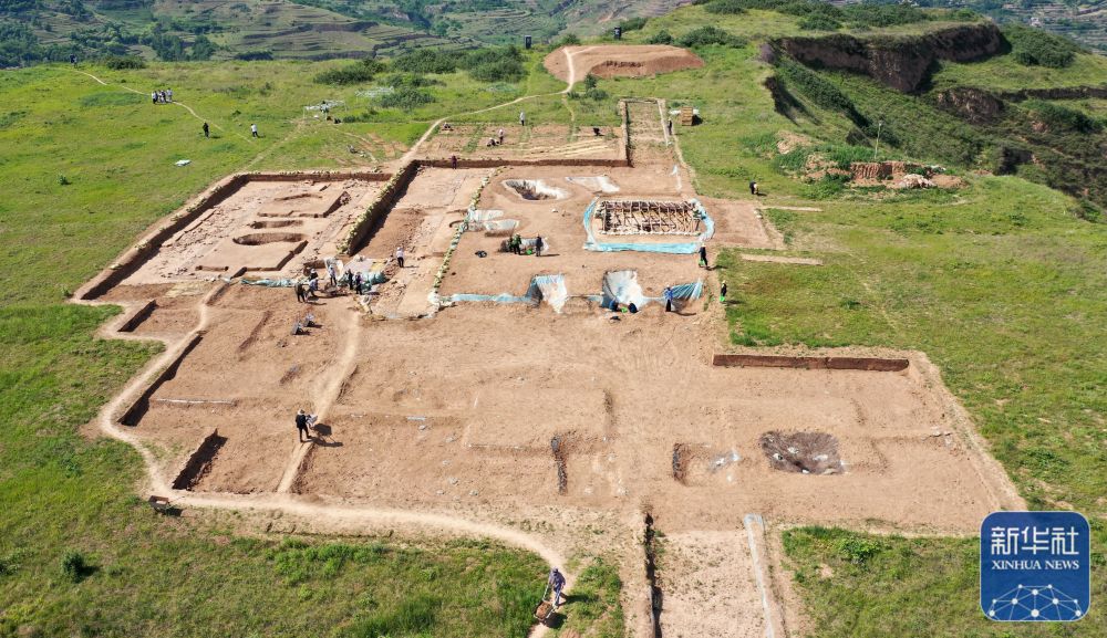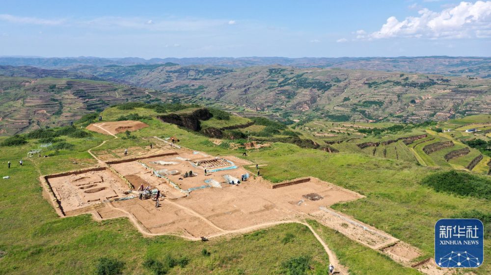 這(zhe)是2022年6月10日拍攝的(de)甘(gan)肅省隴(long)南市(shi)禮(li)縣四角坪遺址考古發掘現場(無人機照片(pian))。