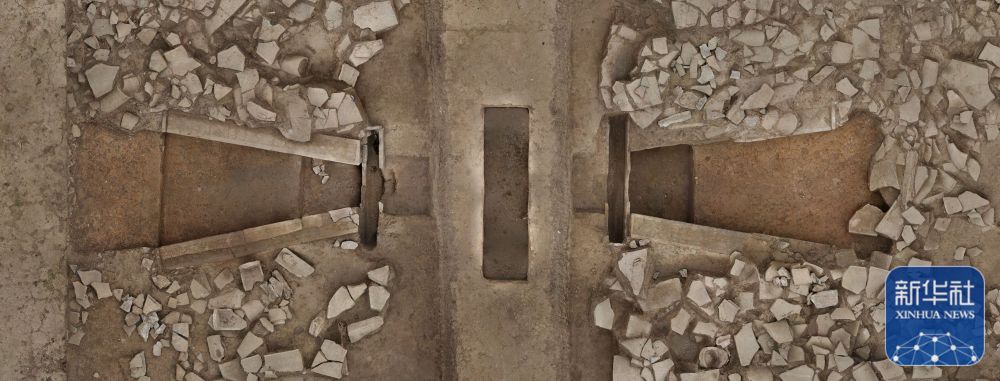 這是甘肅省隴南市禮縣四(si)角坪遺址的排(pai)水設施(shi)(2024年(nian)1月8日攝(she),無人機照(zhao)片)。新華社發(四(si)角坪遺址考古隊供圖)