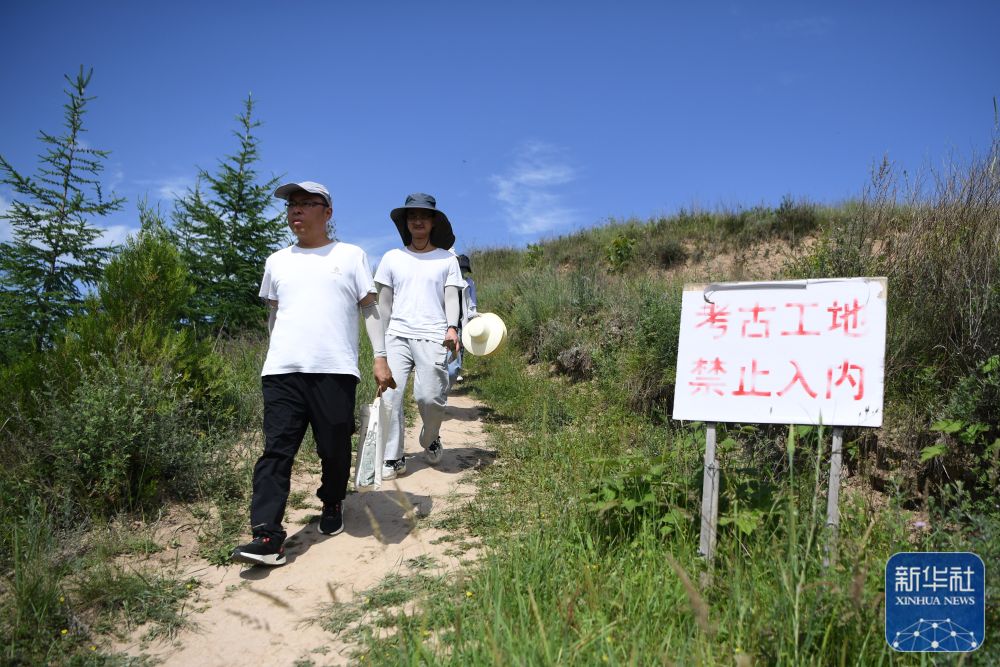 工(gong)作人員在甘肅省隴南市禮(li)縣四角(jiao)坪遺(yi)址考古發掘現場工(gong)作(2022年6月10日(ri)攝)。
