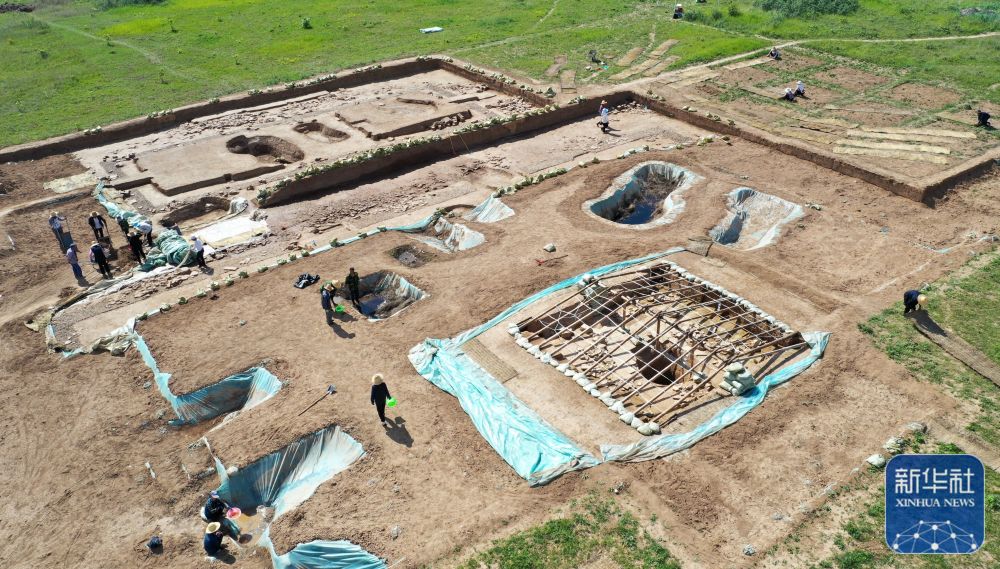 這是2022年(nian)6月10日(ri)拍攝的(de)甘肅省隴南市(shi)禮縣(xian)四角(jiao)坪遺(yi)址考古發掘(jue)現場(無人(ren)機照片)。