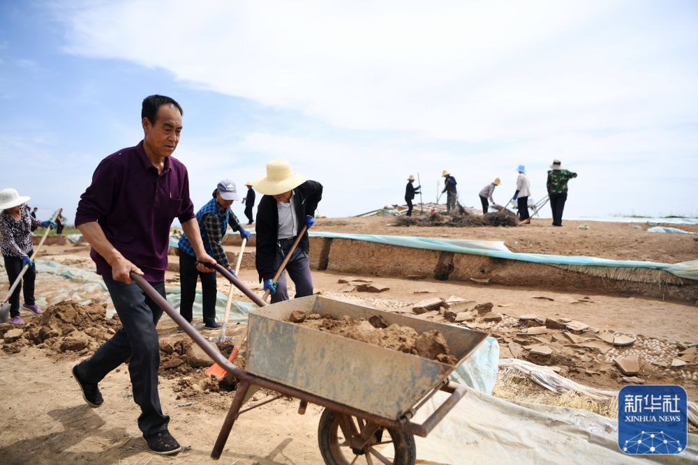 工作人員在甘肅省(sheng)隴南市禮縣四角坪遺址考古發掘現場工作(2022年6月10日攝)。