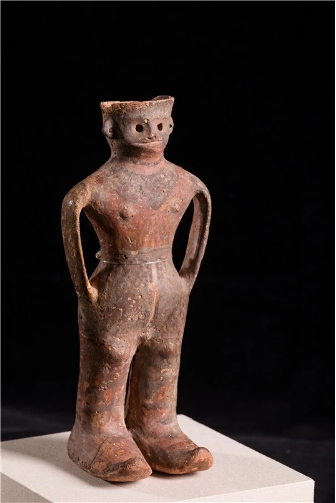 隴東(dong)有少女(nv),而位于河(he)(he)西(xi)(xi)的(de)(de)(de)玉門(men)火燒溝(gou)同樣(yang)出土了(le)(le)一件距今3700多年的(de)(de)(de)人形(xing)(xing)彩(cai)陶(tao)罐(guan),被人們(men)稱(cheng)做“河(he)(he)西(xi)(xi)少年”。在(zai)2019年“少女(nv)”與“少年”這(zhe)一對(dui)“金(jin)童(tong)玉女(nv)”就(jiu)已經邂逅(hou)了(le)(le),2019年中國國家博物館展出“絲路(lu)孔道——甘(gan)(gan)肅(su)文物精華展”時,在(zai)展覽(lan)序(xu)廳門(men)口了(le)(le)生了(le)(le)這(zhe)樣(yang)一場友愛的(de)(de)(de)“接(jie)力”。隴東(dong)大(da)地(di)灣的(de)(de)(de)可愛“少女(nv)”——人頭形(xing)(xing)器口彩(cai)陶(tao)瓶說(shuo):“出來(lai)有一陣(zhen)子了(le)(le),在(zai)京城過了(le)(le)端午節(jie),該(gai)回家了(le)(le)!在(zai)京的(de)(de)(de)時間(jian)雖(sui)短,但我(wo)很(hen)高興作(zuo)為代表在(zai)國家博物館迎(ying)接(jie)全國、全世界的(de)(de)(de)觀眾(zhong),希(xi)望還有機會可以(yi)再來(lai)!”。河(he)(he)西(xi)(xi)火燒溝(gou)的(de)(de)(de)酷(ku)“少年”——人形(xing)(xing)彩(cai)陶(tao)罐(guan)說(shuo):“您回家了(le)(le),我(wo)接(jie)替您的(de)(de)(de)工(gong)作(zuo),在(zai)展覽(lan)的(de)(de)(de)大(da)門(men)口,繼(ji)續(xu)帶領(ling)觀眾(zhong)領(ling)略多彩(cai)厚(hou)重的(de)(de)(de)甘(gan)(gan)肅(su)歷史文明!”