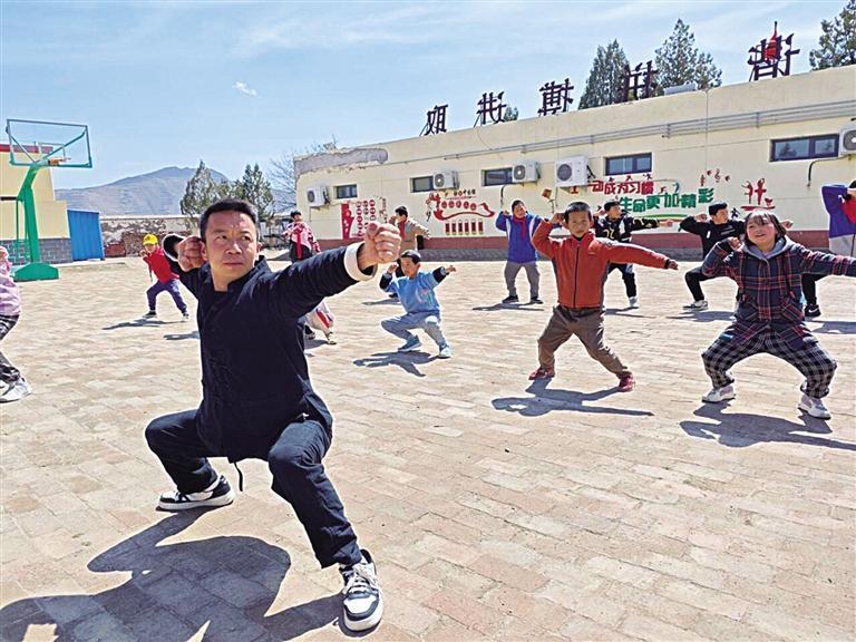 在晏家洼小學,記者看(kan)到(dao),山頂(ding)的陽光與風(feng)里,17個孩(hai)子(zi)整整齊齊地站在操(cao)場(chang)上,在陳(chen)偉禮(li)的帶領(ling)下(xia),有(you)模有(you)樣(yang)地練(lian)起來。弓步,出拳,眼神凌厲,撤腿,下(xia)蹲(dun),身(shen)體下(xia)壓,此刻的孩(hai)子(zi)們像一只只努(nu)力展翅(chi)的雛鷹。