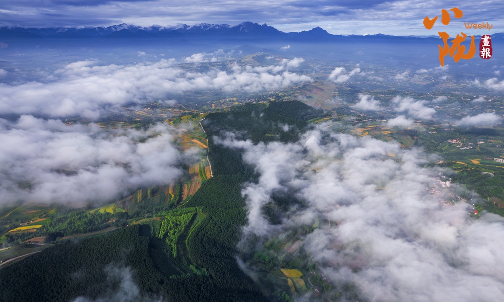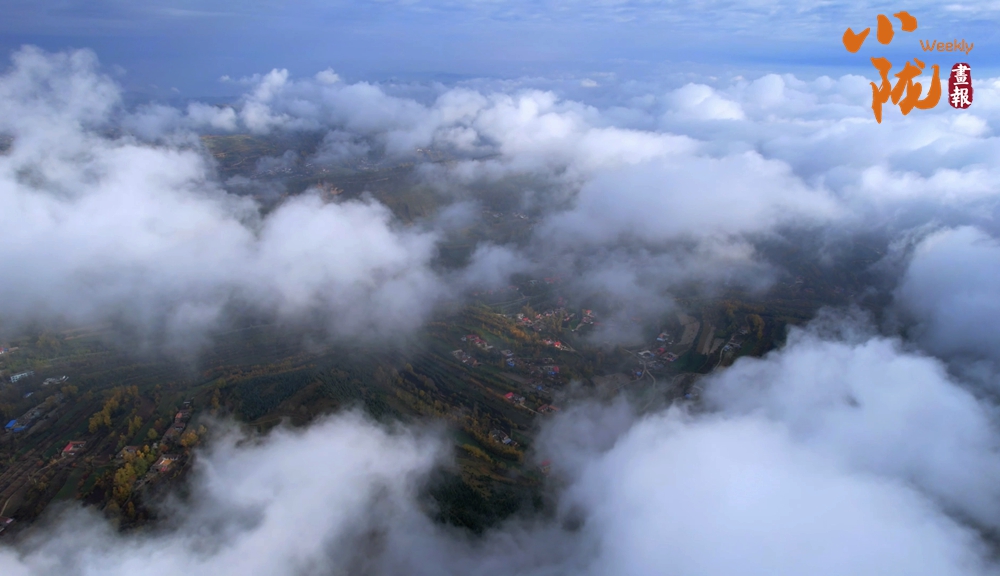 從高處(chu)俯瞰,白色(se)的云海(hai)在大(da)地上空翻(fan)騰涌動,時而聚攏,時而消散,田園、村莊在云霧中(zhong)時隱時現,如(ru)夢如(ru)幻。