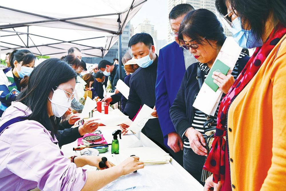 活動現場(chang),甘(gan)(gan)肅(su)省圖書館(guan)的工作人員(yuan)帶領(ling)讀者體驗傳拓之美。 新(xin)甘(gan)(gan)肅(su)·甘(gan)(gan)肅(su)經濟日報記(ji)者 瞿娟 攝(she)