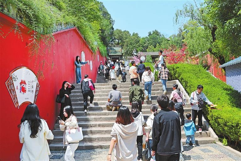 伏羲廟廣場吸引游客打卡拍(pai)照。
