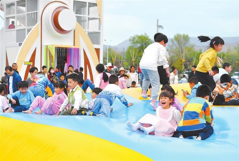 孩(hai)子們(men)在洮(tao)河如意灣(wan)親子樂園功能區快(kuai)樂玩耍。新(xin)甘肅(su)·甘肅(su)日報記者 馬伊星