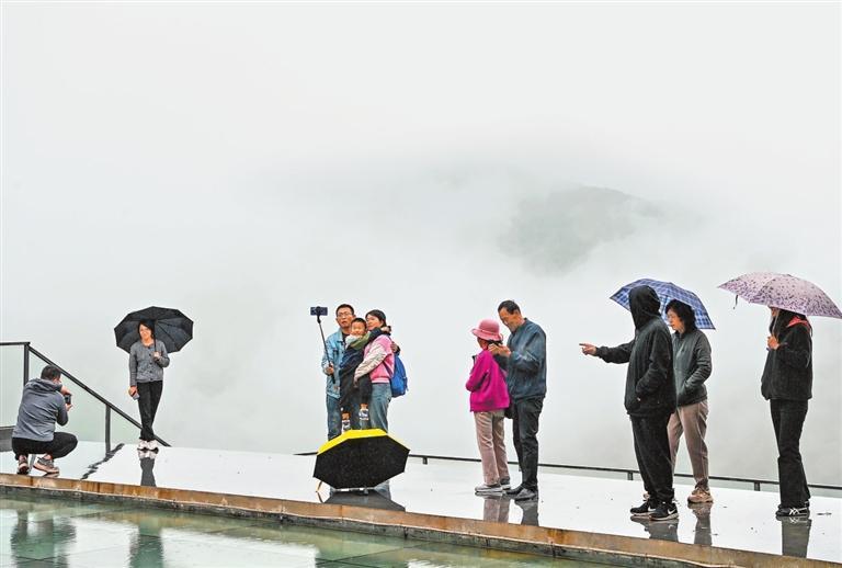 在綿綿細雨中,麥(mai)(mai)積(ji)奇峰時(shi)隱(yin)時(shi)現,吸引游客慕名而來感受“麥(mai)(mai)積(ji)煙(yan)雨”的魅力。新甘(gan)肅(su)·甘(gan)肅(su)日報記者 田(tian) 蹊