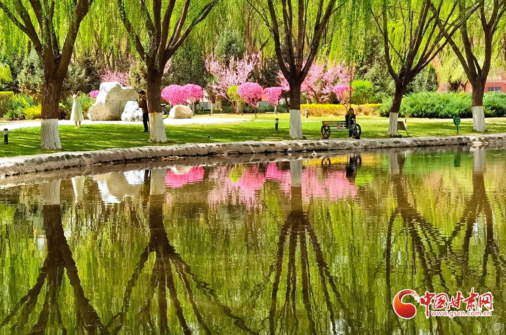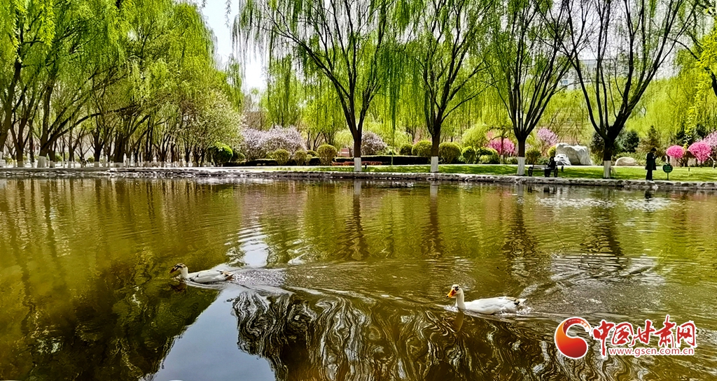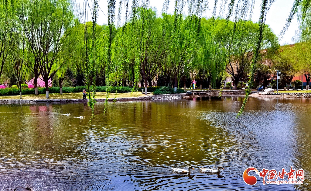 4月14日清晨,位于甘肅省張掖市河西學院的(de)明理湖畔,春風拂柳,鴨子嬉戲(xi),空氣中不時(shi)飄來花香縷縷,到處一(yi)派春意盎(ang)然的(de)美景。