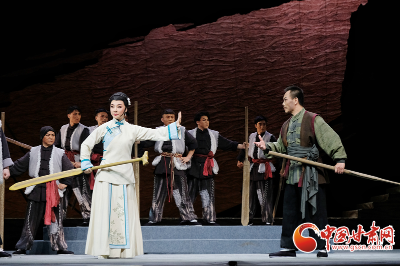 在唱(chang)腔設(she)計上(shang),該劇既有(you)傳統的保留,也有(you)創新的嘗(chang)試。在隴東老道(dao)情的基礎上(shang),通過音樂(le)和配器的創新,提(ti)升了音樂(le)的張(zhang)力和表現力。現場(chang)演出采用(yong)了民(min)族管弦(xian)樂(le)隊伴(ban)奏,使音樂(le)更具交響性,更加豐富多彩,這也是該劇音樂(le)方面的最大創新。