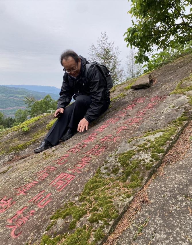 站(zhan)在廟(miao)埡最高處的(de)豹子石上,曹興章先(xian)生給我(wo)們(men)指著對面的(de)山(shan)(shan)(shan)(shan)(shan)(shan)峰說,那里(li)就(jiu)是厚山(shan)(shan)(shan)(shan)(shan)(shan)。到達廟(miao)埡的(de)第三(san)日晨(chen),我(wo)們(men)上厚山(shan)(shan)(shan)(shan)(shan)(shan)。山(shan)(shan)(shan)(shan)(shan)(shan)隱大(da)霧中,路繞山(shan)(shan)(shan)(shan)(shan)(shan)林中,明(ming)明(ming)能(neng)望(wang)見的(de)兩座(zuo)山(shan)(shan)(shan)(shan)(shan)(shan),汽車曲曲折折竟(jing)然跑(pao)了(le)近(jin)兩小時。來(lai)一趟(tang)厚山(shan)(shan)(shan)(shan)(shan)(shan),多(duo)么不(bu)易啊。我(wo)在心里(li)默念,厚山(shan)(shan)(shan)(shan)(shan)(shan),我(wo)們(men)終于來(lai)了(le)!真是煙羅(luo)鋪地(di)竹鉆天,云嶂(zhang)疊溪飛瀑泉。想想曹興章先(xian)生從(cong)這座(zuo)大(da)山(shan)(shan)(shan)(shan)(shan)(shan)里(li)走(zou)出去,得面對多(duo)少艱(jian)辛呢。趁鄉親(qin)們(men)準備午(wu)餐的(de)功夫,興章先(xian)生帶大(da)家參(can)觀各處景(jing)點、摩崖石刻等(deng)。此時天光放晴,天氣預(yu)報的(de)雨,卻沒有來(lai)。