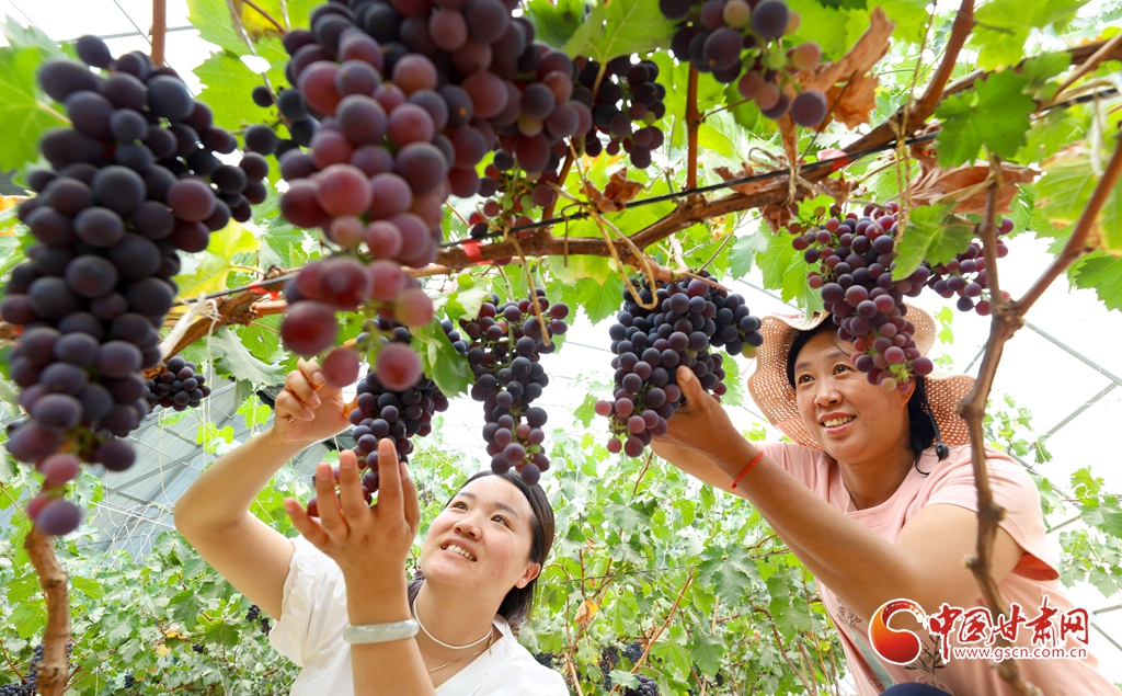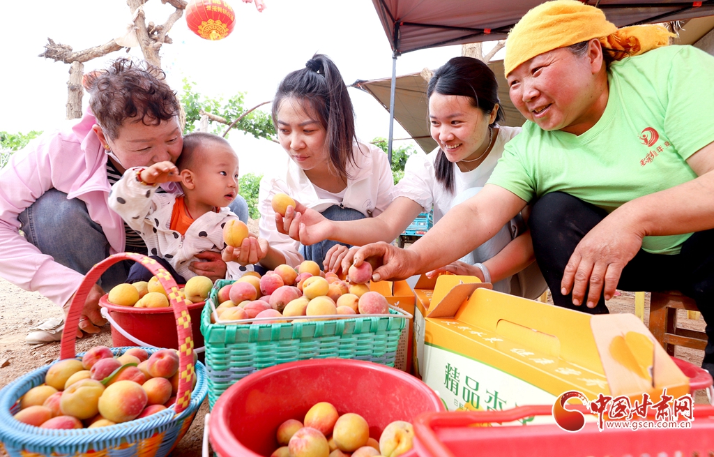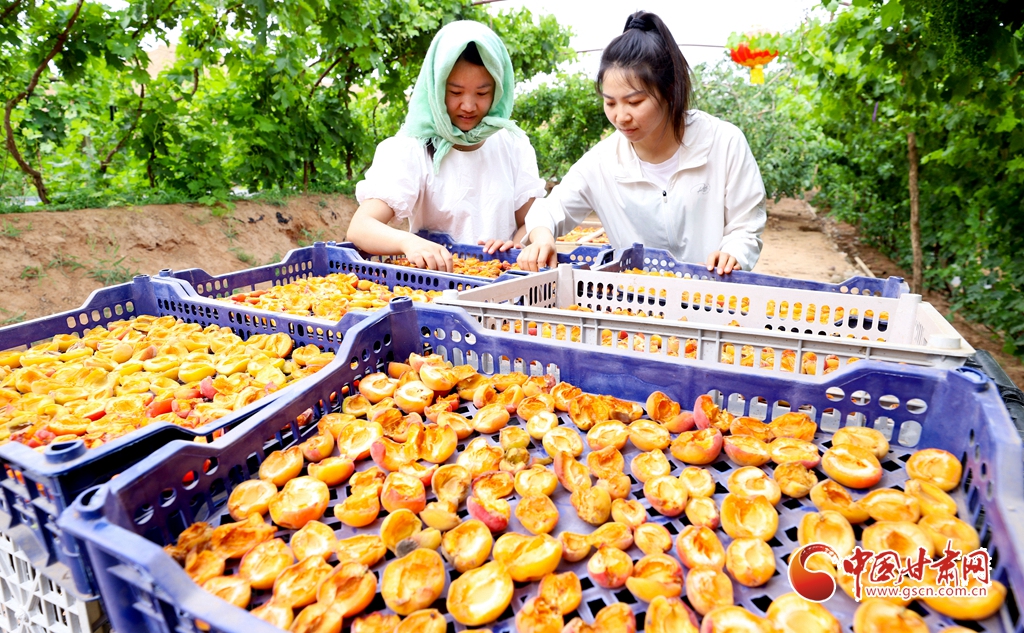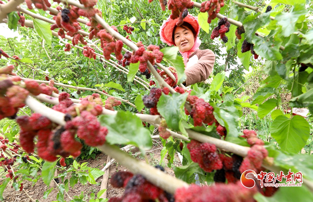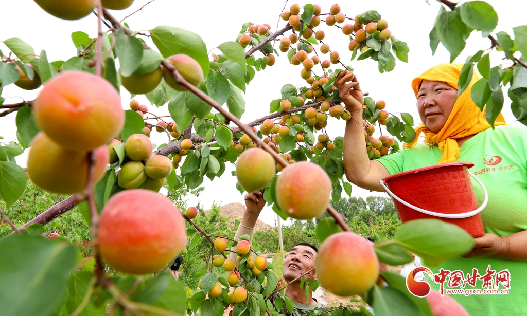 6月5日,在張掖市臨澤縣板橋(qiao)鎮,果農們正在采(cai)摘成熟的(de)杏子、桑葚、葡萄。