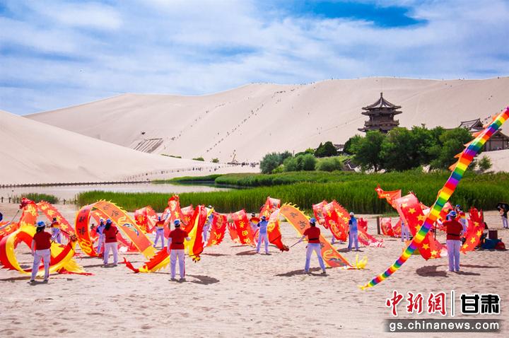 6月10日,敦(dun)煌市鳴沙山下,一場(chang)以敦(dun)煌市舞龍隊為首的(de)20個健身舞蹈(dao)隊為廣大市民和游客獻上(shang)一臺臺精彩(cai)的(de)舞蹈(dao)盛宴,吸引(yin)了眾(zhong)多游客圍觀、拍照,在敦(dun)煌大漠(mo)度(du)過一個難忘的(de)端午節。王斌(bin)銀 攝