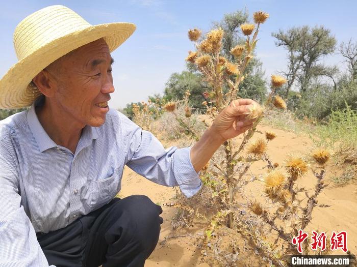 2019年9月3日,古浪縣八步沙“六老漢”第二代治沙人郭萬剛(gang)巡查林場(chang)苗(miao)木長勢情(qing)況。(資料圖(tu))高(gao)康迪 攝(she)