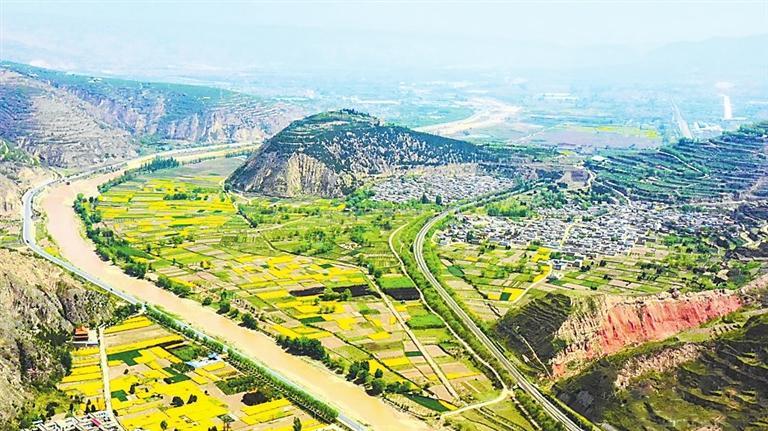 從卦臺(tai)(tai)山(shan)腳(jiao)下(xia)沿著陡峭(qiao)臺(tai)(tai)階一(yi)路前行,來到一(yi)處平(ping)臺(tai)(tai),向東遠眺,三陽川內(nei),阡陌縱橫(heng)的(de)(de)金(jin)黃田埂(geng);白墻(qiang)黑瓦的(de)(de)村莊院落;滔(tao)(tao)滔(tao)(tao)渭河(he)穿村過鎮蜿蜒向東流去,在(zai)河(he)灘(tan)地帶形成了一(yi)個巨大的(de)(de)S形圖(tu)案,這就是傳說(shuo)中伏羲畫(hua)八(ba)卦的(de)(de)實物(wu)圖(tu)形。