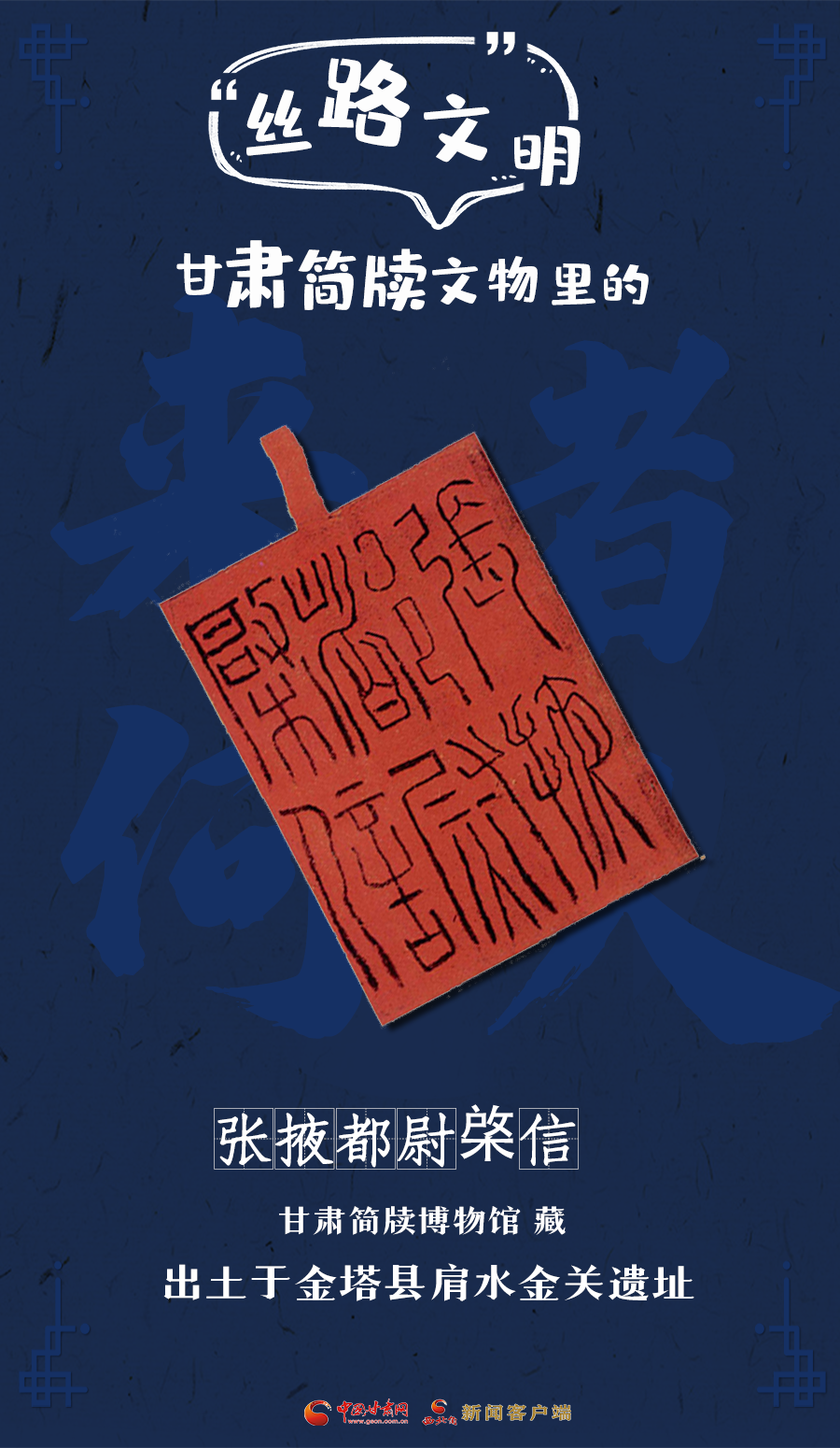 上方綴系,墨筆篆書“張掖都尉棨(qi)信”六字。文(wen)字簡明,應屬于幡信之(zhi)類