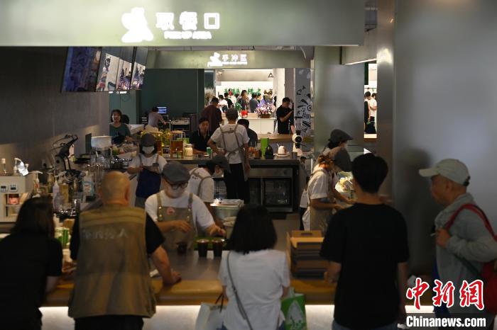 6月(yue)19日,甘(gan)肅省博物館(guan)(guan)藝術生活館(guan)(guan)在(zai)甘(gan)肅蘭(lan)州開(kai)館(guan)(guan)。該館(guan)(guan)是甘(gan)肅省博物館(guan)(guan)打造的一處復合型高價值文(wen)化空間,融合了咖(ka)啡(fei)、烘焙、展(zhan)覽、藝術書店(dian)、文(wen)創銷售等(deng)多(duo)樣化業態(tai)。圖為游客在(zai)咖(ka)啡(fei)區(qu)排隊等(deng)待。記者(zhe) 李亞龍 攝