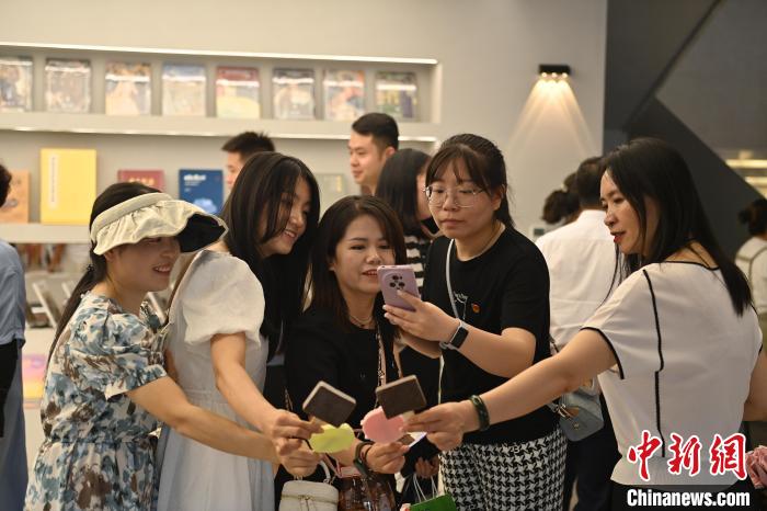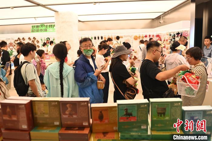 6月(yue)19日,甘肅省博(bo)(bo)物(wu)館藝(yi)術(shu)生(sheng)活館在甘肅蘭(lan)州(zhou)(zhou)開館。該館是甘肅省博(bo)(bo)物(wu)館打造的(de)一處(chu)復合型高價值文(wen)(wen)化空間,融(rong)合了咖啡、烘焙、展覽、藝(yi)術(shu)書店、文(wen)(wen)創(chuang)(chuang)銷售等(deng)多樣化業(ye)態。圖為游客挑選蘭(lan)州(zhou)(zhou)凍梨文(wen)(wen)創(chuang)(chuang)玩偶。中新社記者 李亞(ya)龍 攝