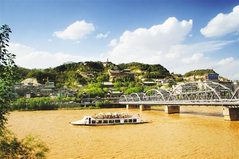 黃河游船駛過(guo)蘭(lan)州中(zhong)山橋