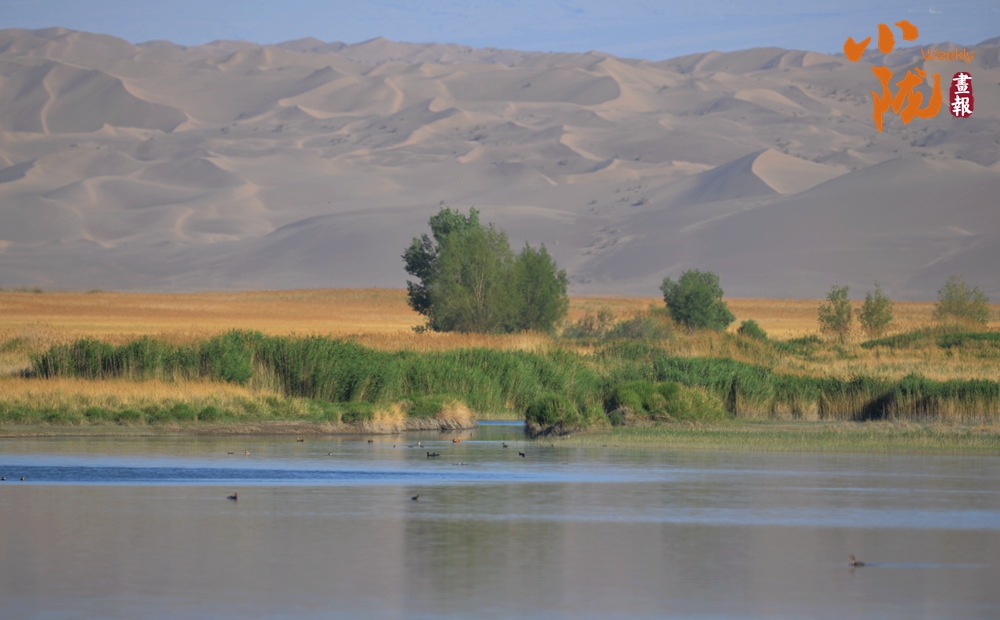 水清岸綠(lv),魚鳥翔集、天水一(yi)色、葦叢(cong)若畫,陽光(guang)自然(ran)保護區猶(you)如一(yi)顆(ke)璀璨的(de)綠(lv)寶石(shi),鑲(xiang)嵌在美麗富饒的(de)敦煌大地上,造福子孫萬代。
