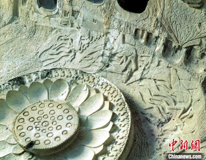 龍門石窟(ku)蓮花(hua)洞頂(ding)部的蓮花(hua)藻井。 周沁軍 攝(she)