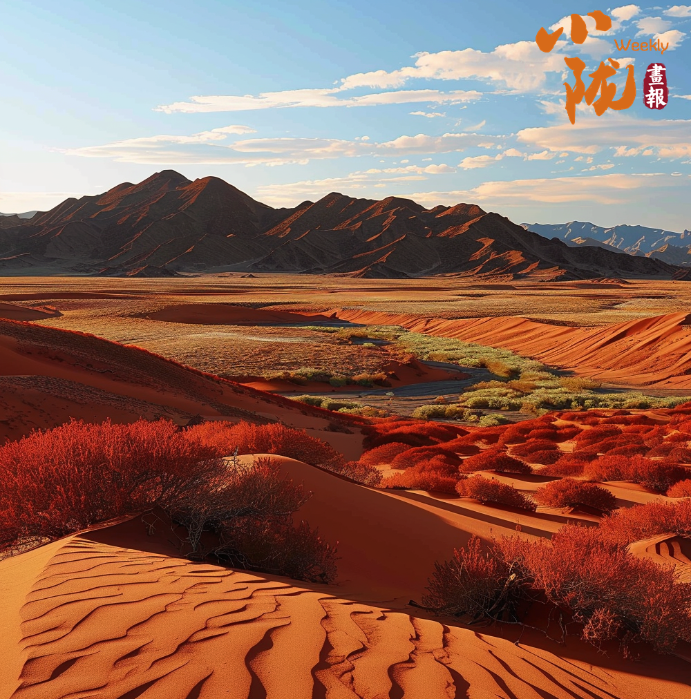一(yi)(yi)叢叢紅柳宛如流動(dong)的彩云(yun),在這(zhe)蒼茫的戈壁灘上盡情綻放(fang)。這(zhe)種看似平凡卻又充滿(man)生(sheng)命力的植(zhi)物,與(yu)(yu)藍天白云(yun)相(xiang)映,與(yu)(yu)沙(sha)丘中一(yi)(yi)蓬蓬的綠色為(wei)伍,為(wei)這(zhe)粗狂的戈壁帶來了無(wu)限生(sheng)機。
