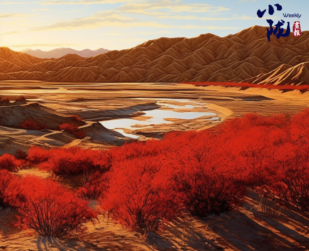 這里氣(qi)候(hou)干燥,降(jiang)水稀少,高大的植物難以生存。只(zhi)有紅(hong)(hong)柳深扎(zha)根(gen)須,迎著風沙,頑強生長。遠遠望去,密集的紅(hong)(hong)柳連成一片,把戈壁(bi)染成了(le)紅(hong)(hong)色(se)。