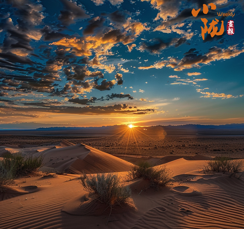 夕(xi)陽(yang)西下(xia),余暉與(yu)戈壁(bi)融為一體,紅橙(cheng)色的光芒將(jiang)整個(ge)地(di)平線染成了一片暖色。在這個(ge)時刻,戈壁(bi)灘的草木們也似(si)乎感受到了晚霞的美麗,它(ta)們輕(qing)輕(qing)搖擺,似(si)乎在與(yu)夕(xi)陽(yang)共舞。
