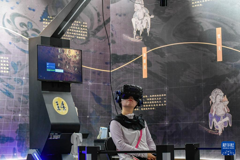 7月(yue)22日,游客線下體(ti)驗(yan)“尋境敦(dun)煌(huang)——數字(zi)敦(dun)煌(huang)沉浸展”。新華社記者(zhe) 郎兵兵 攝