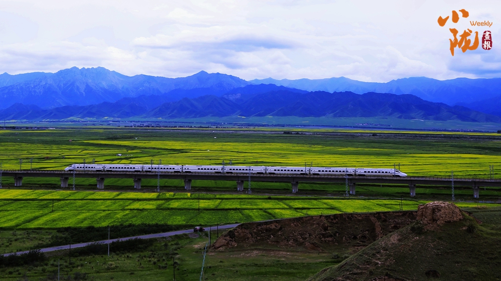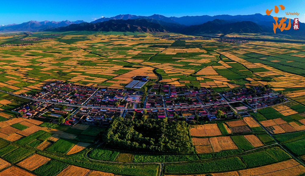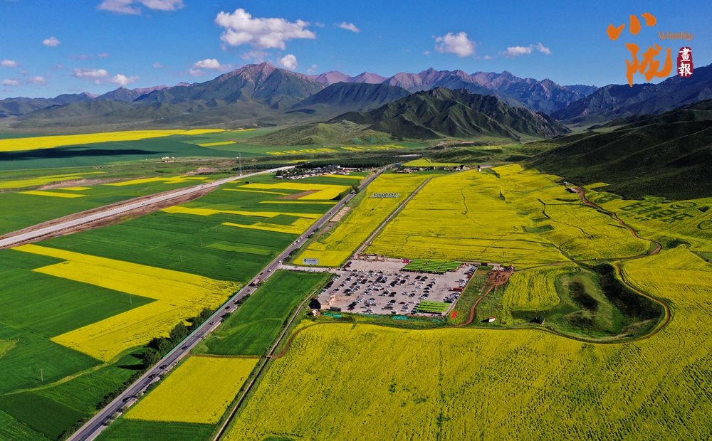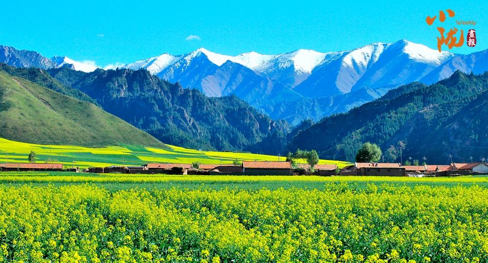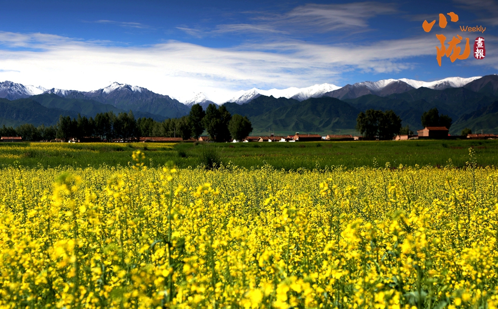 在藍天白云和祁連(lian)雪峰(feng)的(de)映(ying)襯下(xia),那盛開的(de)油菜(cai)花(hua)、點綴在花(hua)海(hai)中的(de)村莊人家,勾勒出一(yi)幅優美的(de)田園(yuan)風光(guang)畫卷。