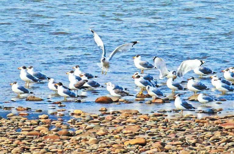 黃河蘭州段成群(qun)結(jie)隊(dui)的漁鷗在水面游弋(yi)。田蹊
