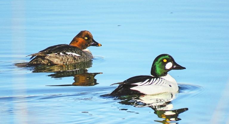 蘭(lan)州銀灘(tan)濕地公園(yuan)里的兩只鵲(que)鴨,右邊為(wei)雄鴨,左邊為(wei)雌鴨。