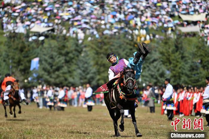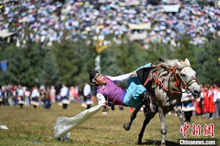 8月4日(ri),藏(zang)族(zu)騎手在(zai)當周草原上(shang)(shang)表(biao)演馬(ma)術。當日(ri),第22屆九(jiu)色甘(gan)(gan)南香(xiang)巴拉旅游(you)藝術節(jie)(jie)在(zai)甘(gan)(gan)肅省甘(gan)(gan)南藏(zang)族(zu)自治州當周草原開(kai)幕。人(ren)們身著節(jie)(jie)日(ri)盛裝載歌(ge)載舞、歡聚一堂,馬(ma)隊(dui)巡游(you)、千(qian)人(ren)鍋莊舞等(deng)活動精(jing)彩上(shang)(shang)演。九(jiu)色甘(gan)(gan)南香(xiang)巴拉旅游(you)藝術節(jie)(jie)既是民眾浪山聚會的(de)節(jie)(jie)日(ri)盛會,也是展(zhan)現發展(zhan)成就、擴(kuo)大(da)對(dui)外開(kai)放的(de)重要窗口,更(geng)是展(zhan)示(shi)民俗文(wen)化(hua)、促(cu)進廣泛交往交流交融的(de)有效載體。中新社記(ji)者 九(jiu)美旦增 攝