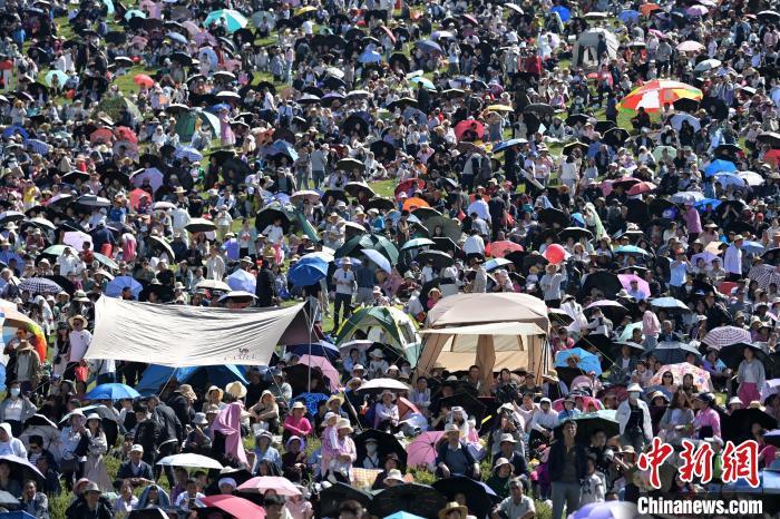 8月4日,民眾在(zai)當周草原浪山聚會(hui)(hui)。當日,第(di)22屆九色(se)甘(gan)南香(xiang)巴拉旅游(you)藝(yi)術(shu)節在(zai)甘(gan)肅(su)省(sheng)甘(gan)南藏族自治州(zhou)當周草原開幕。人們(men)身著節日盛(sheng)裝載歌(ge)載舞、歡聚一堂,馬隊巡(xun)游(you)、千人鍋莊(zhuang)舞等活動精(jing)彩(cai)上演(yan)。九色(se)甘(gan)南香(xiang)巴拉旅游(you)藝(yi)術(shu)節既是(shi)民眾浪山聚會(hui)(hui)的節日盛(sheng)會(hui)(hui),也是(shi)展現發展成就、擴大(da)對外開放(fang)的重要窗口,更是(shi)展示民俗文化(hua)、促(cu)進廣(guang)泛交(jiao)(jiao)往(wang)交(jiao)(jiao)流(liu)交(jiao)(jiao)融的有效載體。中新社記者 九美旦增 攝(she)
