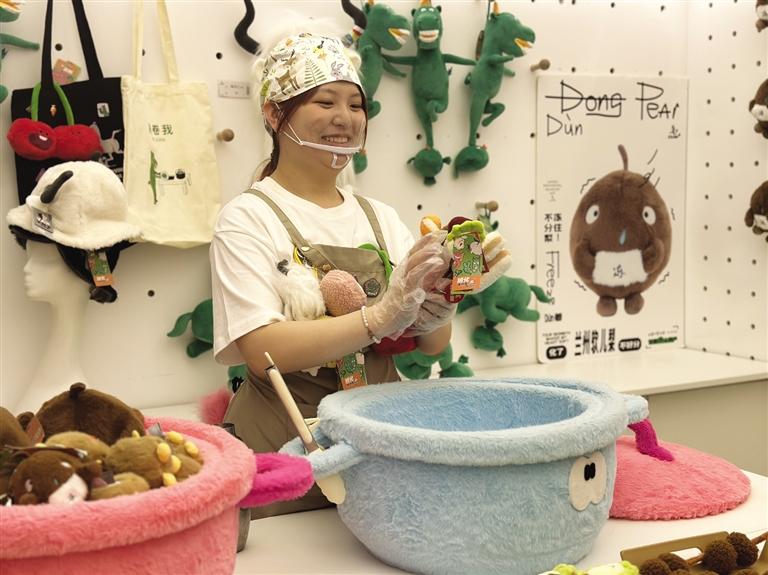 “麻辣燙(tang)沒有了,但是(shi)我買到(dao)砂(sha)鍋啦!”8月4日,外(wai)地游(you)客張(zhang)欣在朋友(you)圈曬出在蘭州游(you)玩時(shi)的(de)購物“戰績”。張(zhang)欣口中的(de)“麻辣燙(tang)”和“砂(sha)鍋”并非是(shi)餐桌(zhuo)上的(de)美食(shi),而是(shi)甘(gan)肅省博物館(guan)(guan)近期推(tui)(tui)出的(de)系列文創產品(pin)。這毛(mao)茸(rong)茸(rong)的(de)“麻辣燙(tang)”和“砂(sha)鍋”,靈感來源于地方特色美食(shi),屬于館(guan)(guan)內“甘(gan)肅(不)土(tu)特產”系列,一經(jing)推(tui)(tui)出便大受歡(huan)迎。此外(wai),還(huan)有“凍梨(li)”“櫻桃”“黃芪”等萌物,一起(qi)被端上游(you)客的(de)“餐桌(zhuo)”。