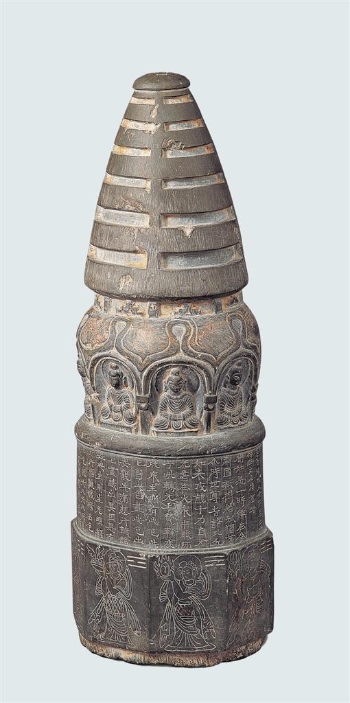 高(gao)善穆石造(zao)(zao)像(xiang)塔(ta)(ta)(ta)(ta),1969年甘肅省酒(jiu)泉(quan)市出土。寶蓋、相輪、塔(ta)(ta)(ta)(ta)頸、塔(ta)(ta)(ta)(ta)肩、塔(ta)(ta)(ta)(ta)基(ji)一(yi)(yi)應俱(ju)全(quan),底部有榫(sun)頭。寶蓋頂端(duan)(duan)中間刻北(bei)(bei)斗(dou)(dou)七星,塔(ta)(ta)(ta)(ta)腹陰(yin)刻《增(zeng)一(yi)(yi)阿含經·結禁品(pin)》的(de)前半(ban)部分及發(fa)愿文(wen),有承玄元年(公元428年)紀(ji)年。塔(ta)(ta)(ta)(ta)基(ji)為八面形,每面陰(yin)刻一(yi)(yi)像(xiang),像(xiang)左側上方(fang)刻八卦(gua)符號。該造(zao)(zao)像(xiang)塔(ta)(ta)(ta)(ta)是(shi)現存北(bei)(bei)涼石塔(ta)(ta)(ta)(ta)中保存最完整的(de)一(yi)(yi)件,在造(zao)(zao)型上繼承了犍陀羅供養小塔(ta)(ta)(ta)(ta)的(de)基(ji)本造(zao)(zao)型特征,又有了新(xin)的(de)發(fa)展(zhan),如塔(ta)(ta)(ta)(ta)頂端(duan)(duan)的(de)北(bei)(bei)斗(dou)(dou)七星,塔(ta)(ta)(ta)(ta)基(ji)的(de)八卦(gua)符號等,體現出佛教(jiao)(jiao)(jiao)文(wen)化和(he)中國本土文(wen)化之間的(de)碰撞和(he)融(rong)合,是(shi)研究早期佛教(jiao)(jiao)(jiao)藝術和(he)佛教(jiao)(jiao)(jiao)思想的(de)重要(yao)標本。