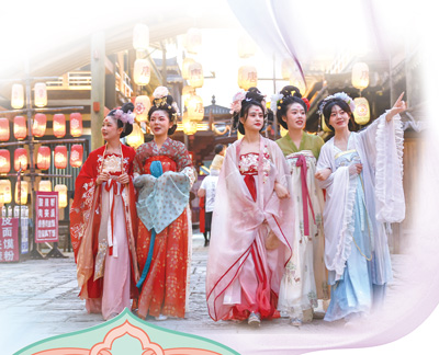 身著(zhu)漢服的(de)游客在湖北省襄陽市唐(tang)城景(jing)區游玩。 楊 東攝(影像中國) |
