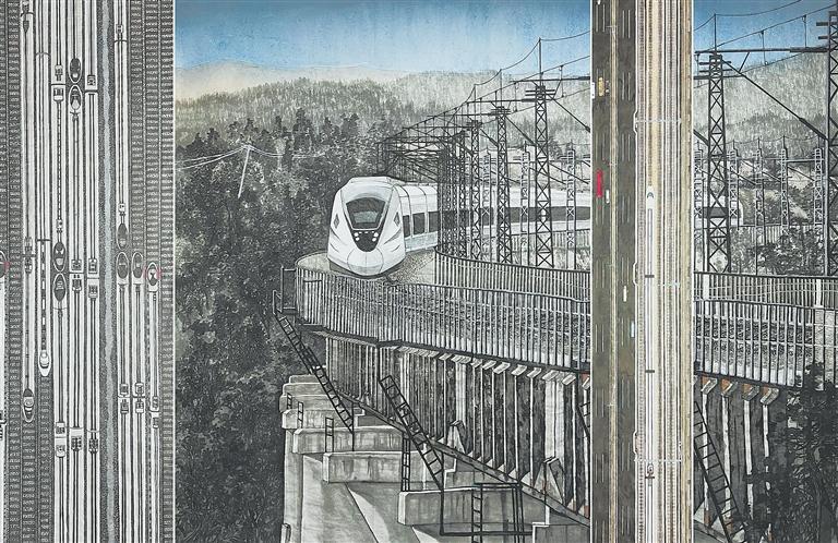 中國高鐵進大山 (中國畫) 劉(liu)鋒