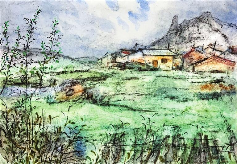 平常在畫室里畫畫時,喜歡用(yong)淡(dan)淡(dan)的墨色體(ti)會與宣紙碰撞所(suo)散發出的獨特墨韻。但是描摹西部,需要更加深厚(hou)、絢爛、豐富的色彩,才(cai)能表達我們(men)的感(gan)受,寄予我們(men)對(dui)這片土地的深情(qing)。離開故(gu)土,踏向(xiang)遠方(fang),那份(fen)對(dui)家鄉的無盡(jin)思念和深深眷(juan)戀,是每一位游子心(xin)中難以言喻的情(qing)感(gan),如同無形的紐(niu)帶,將我們(men)與故(gu)鄉緊(jin)緊(jin)相連(lian)。這種情(qing)感(gan),如同西北高原上那連(lian)綿不絕的山脈,既遙遠又清晰,既冷峻又溫暖。