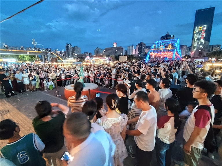 夜游黃(huang)河(he)(he)項(xiang)目(mu)則圍(wei)繞黃(huang)金水道,結合蘭州南北狹長、“橋梁(liang)之(zhi)都”的(de)特(te)點(dian),串聯黃(huang)河(he)(he)母親、中山橋、白塔(ta)山,形(xing)成(cheng)“夜游黃(huang)河(he)(he)”3條精品航線(xian),開通水上巴士環(huan)線(xian),并依托碼頭(tou)創新開展露營(ying)、草地婚禮等活動,全方位展示了黃(huang)河(he)(he)蘭州段魅力。同時,黃(huang)河(he)(he)之(zhi)濱音(yin)樂展演、黃(huang)河(he)(he)市集(ji)等豐富精彩的(de)活動也已經成(cheng)為“夜游黃(huang)河(he)(he)”的(de)常態化演出(chu)和節目(mu)。