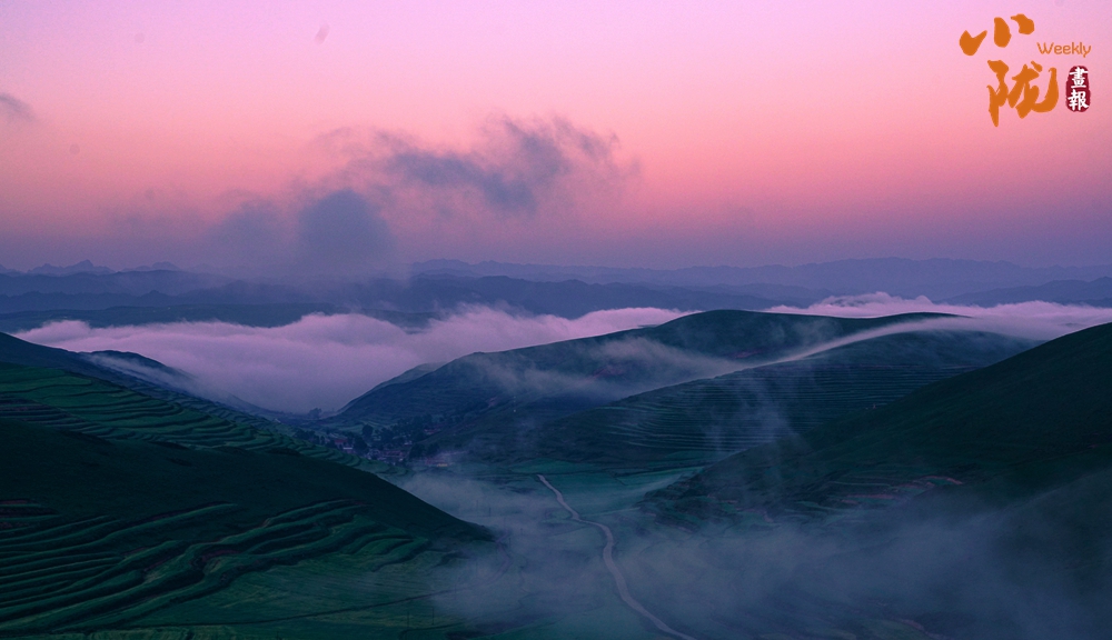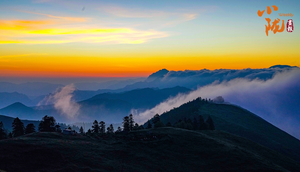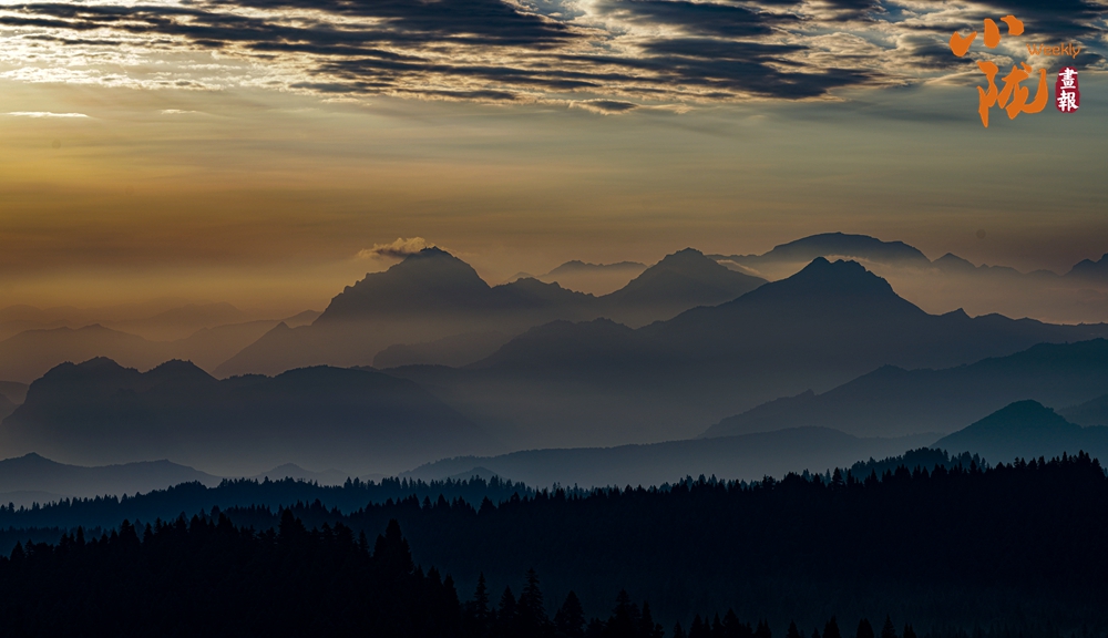 傍晚時分,天空變得絢爛多彩,晚霞映照白霧,起伏著山巒,坡地和浪漫;幾處白墻黛瓦的民居,升起炊香,滿目清爽之氣彌漫,用詩意繪就生態家園。
