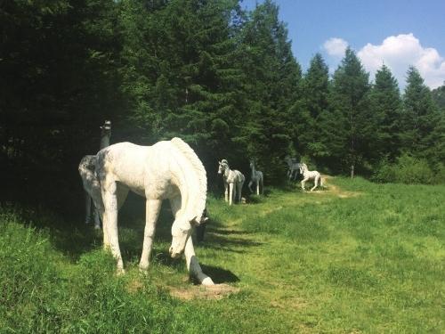 在(zai)碧草連(lian)天的谷地,當地旅游部門擺放了一(yi)組白馬的大型(xing)雕塑,栩(xu)栩(xu)如(ru)生(sheng),它們(men)要么(me)仰天長嘶,要么(me)低首(shou)撫弄地上的青(qing)草,還有的彼(bi)此耳鬢廝(si)磨,像(xiang)是親密的戀(lian)人(ren)。