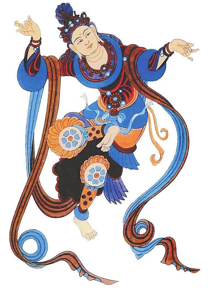 敦煌莫(mo)高窟(ku)(ku)(ku),窟(ku)(ku)(ku)窟(ku)(ku)(ku)有(you)壁畫,拼接起(qi)來長達(da)45000多平方米,有(you)世(shi)界上(shang)“最大畫廊”之稱。這(zhe)些壁畫中(zhong),幾乎每幅都(dou)有(you)舞(wu)蹈(dao)(dao)形象(xiang)(xiang),如在(zai)窟(ku)(ku)(ku)頂(ding)、龕(kan)楣、藻井(jing)遨游的(de)飛天,憑欄上(shang)的(de)天宮伎(ji)樂,經變(bian)畫中(zhong)的(de)娛佛、敬佛的(de)獻舞(wu)者——伎(ji)樂天,出(chu)行圖中(zhong)跳著具(ju)有(you)濃郁(yu)生活氣(qi)息的(de)世(shi)俗樂舞(wu),以及富有(you)舞(wu)蹈(dao)(dao)美感的(de)彩(cai)塑(su)菩薩(sa)、天王(wang)力(li)士等,琳瑯(lang)滿(man)目,精妙絕倫。這(zhe)些舞(wu)蹈(dao)(dao)形象(xiang)(xiang)充分反映了從十六國北朝至(zhi)元(yuan)代千余(yu)年來不同歷史時期(qi)的(de)舞(wu)蹈(dao)(dao)服飾、形態、風(feng)貌,為(wei)我們挖掘、整理、弘揚(yang)中(zhong)華(hua)民族舞(wu)蹈(dao)(dao)文化提供(gong)了十分珍貴的(de)形象(xiang)(xiang)資料。