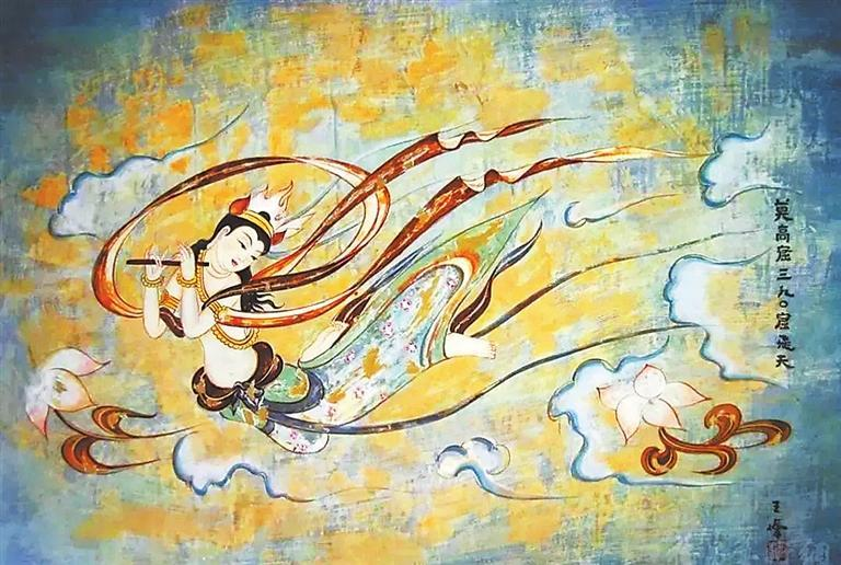 莫高窟第390窟飛天圖(臨摹(mo))王峰(feng)