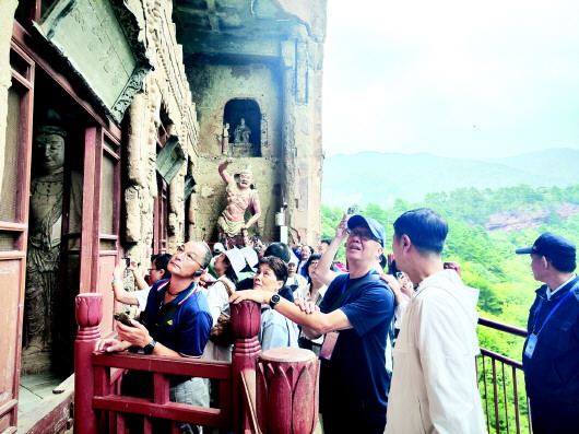 活(huo)動(dong)當(dang)天,來(lai)自臺灣(wan)文博(bo)(bo)領(ling)域的(de)(de)專(zhuan)家學者一行,懷著對古(gu)老(lao)文化的(de)(de)敬仰與憧憬(jing),在(zai)(zai)(zai)麥積山石窟感受石窟藝(yi)術的(de)(de)獨特魅力、在(zai)(zai)(zai)天水(shui)(shui)(shui)工業博(bo)(bo)物(wu)館探尋(xun)工業發展的(de)(de)歷史(shi)脈(mo)絡、在(zai)(zai)(zai)伏羲廟體悟中華始祖文化的(de)(de)博(bo)(bo)大精深、在(zai)(zai)(zai)天水(shui)(shui)(shui)市(shi)博(bo)(bo)物(wu)館領(ling)略(lve)豐(feng)富的(de)(de)歷史(shi)文物(wu)承載的(de)(de)歲月記憶、在(zai)(zai)(zai)天水(shui)(shui)(shui)古(gu)城品味(wei)古(gu)色(se)古(gu)香的(de)(de)韻味(wei)與風情……一系列豐(feng)富多彩的(de)(de)文化交(jiao)流活(huo)動(dong),讓他們(men)近(jin)距離感受到了(le)古(gu)城天水(shui)(shui)(shui)的(de)(de)風景名勝、文化遺產(chan)保護傳(chuan)承及山川風物(wu)。