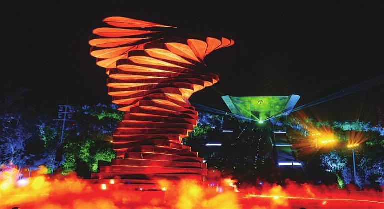 秋日(ri)的(de)金川國(guo)家礦(kuang)山公園樂聲悠揚(yang)、光影迷(mi)離(li)。夜晚,伴隨著動(dong)人的(de)旋律,絢爛的(de)光影投射到主界(jie)碑“龍首魂”上,金昌元素生動(dong)地展現(xian)在眼前,“鎳都之光”文化展演為旅客(ke)帶(dai)來了一場視覺盛宴(yan)。