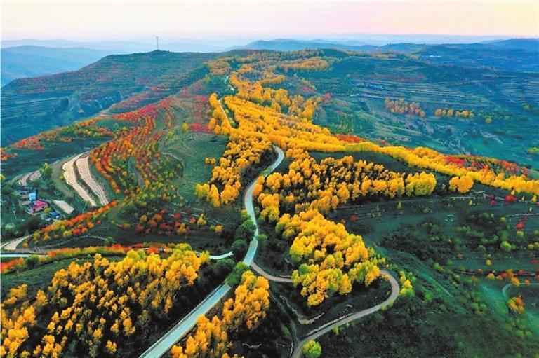 金(jin)秋時節(jie),這里秋葉(xie)五彩繽紛(fen),黃(huang)得(de)(de)(de)如(ru)金(jin),綠得(de)(de)(de)如(ru)玉(yu),紅得(de)(de)(de)如(ru)火(huo),把秋姑娘打扮(ban)得(de)(de)(de)格外妖嬈。一(yi)陣涼風拂(fu)過(guo),金(jin)黃(huang)的樹葉(xie),搖曳(ye)著(zhu)一(yi)把把小扇(shan)子,從空中飄(piao)飄(piao)而下,似乎在訴說著(zhu)一(yi)個美麗的童話(hua)。村落散落在綿延(yan)數里的山腳(jiao)下,村前(qian)屋(wu)后金(jin)色(se)圍繞,梯田如(ru)鏈似帶、穿插交錯,如(ru)一(yi)幅幅線條(tiao)簡潔(jie)明(ming)快的木刻版畫。